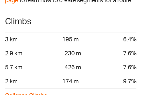Og her er de stigninger der er på turen: